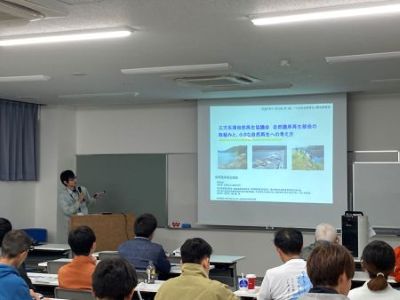 本研修会では、三方五湖自然再生協議会(自然護岸再生部会)が三方五湖周辺河川での自然再生に向けて小さな自然再生を活用した多様な水辺環境の創出や魚類遡上環境の改善などを打ち出す中、はす川流域において地域で小さな自然再生を進めていくためのアイデアやヒントを、現地も巡りながら参加者とともに学び合いました。(令和7年度河川基金助成事業)