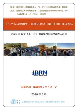 2025年12月6日(土) に滋賀県内の琵琶湖流入河川である犬上川、愛知川、野洲川、家棟川において、「滋賀県内での小さな自然再生の取組みを学ぶ」をテーマに開催しました『第31回 「小さな自然再生」現地研修会』の簡易報告書が完成しました。